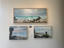 "A Few Less Words" explores the materials that drive their own logic. This artist leans into contrast: the spaces between structure and unraveling. She is interested in following what wants to take shape—because art, when left to its own devices, always does. "For the Love of Textiles + Art" showcases atmospheric landscapes inspired by the artist’s exploration of the outdoors, where she finds inspiration in the captivating elements of land and sea. Each piece highlights the intricate interplay of the landscape during different times of the day. The textile art is a new exploration and the art takes on another level of engagement, offering both a tactile and functional aspect that invites viewers to connect with the work in multiple senses. Through this exhibit the artist aims to evoke a sense of peace and appreciation for the natural world, reminding us of the transformative power of our surroundings.