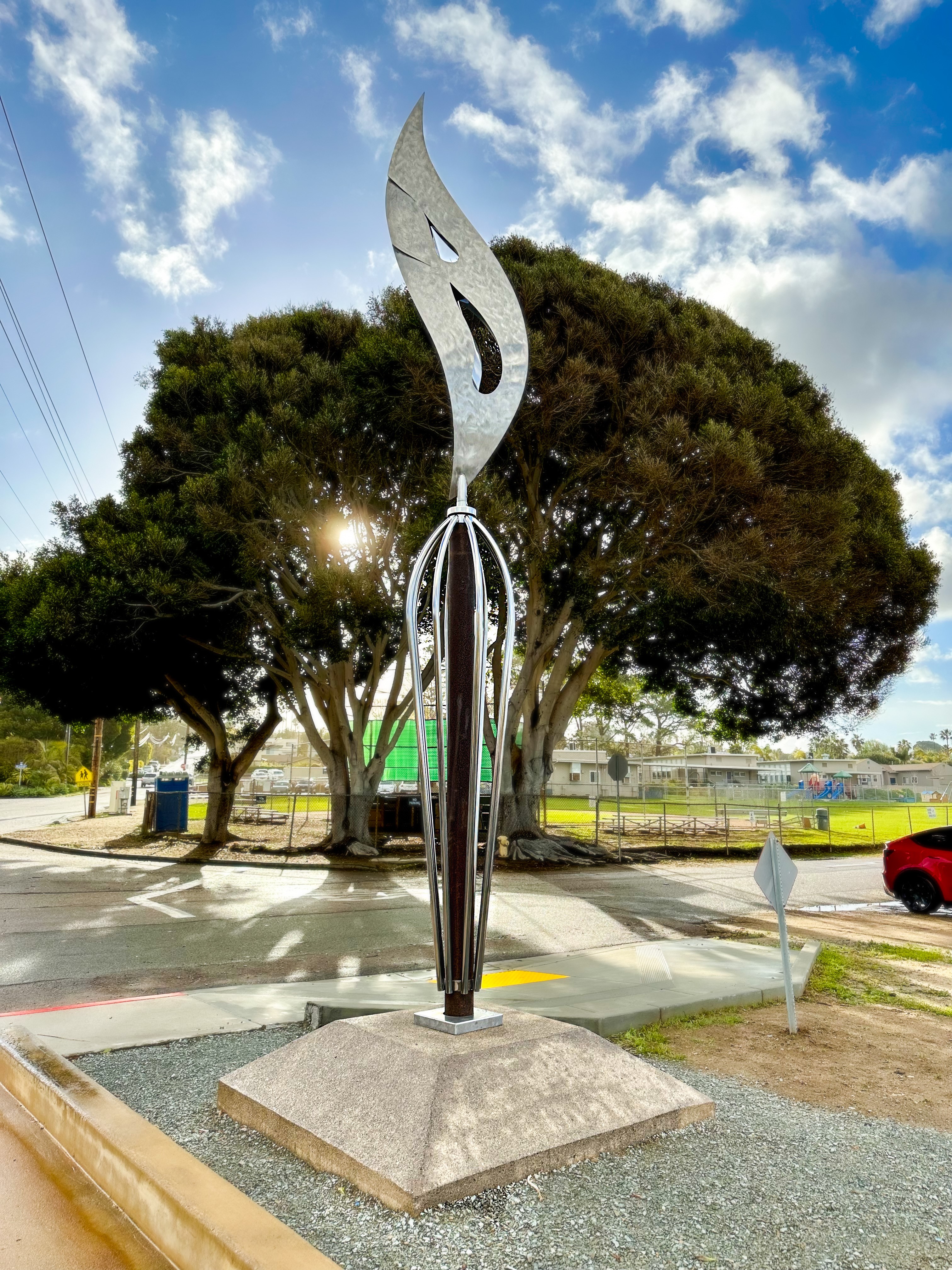 The Pinion was first installed back in 2013 as part of the City’s Temporary Art Program and quickly became a community favorite. The positive response from the community led the City Council to approve the purchase of the art piece in October 2021. City Council also directed Staff to design the new and improved permanent base that you see to ensure continuous kinetic movement. The surrounding area will soon be improved with drought tolerant plants and succulents.